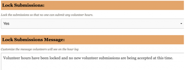 If your organization needs to lock the hour log, you can now customize the message that is shown to volunteers on the locked hour log page.