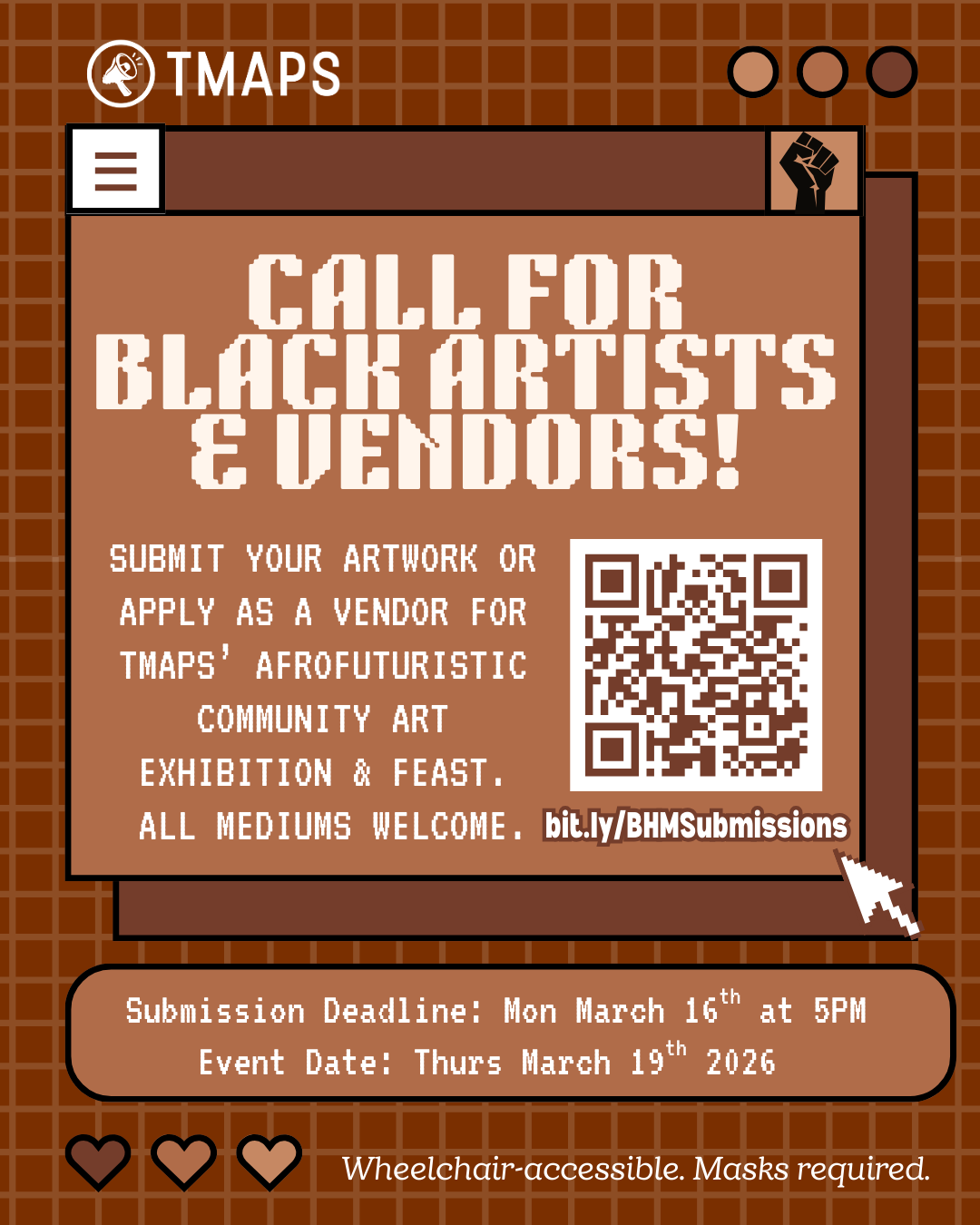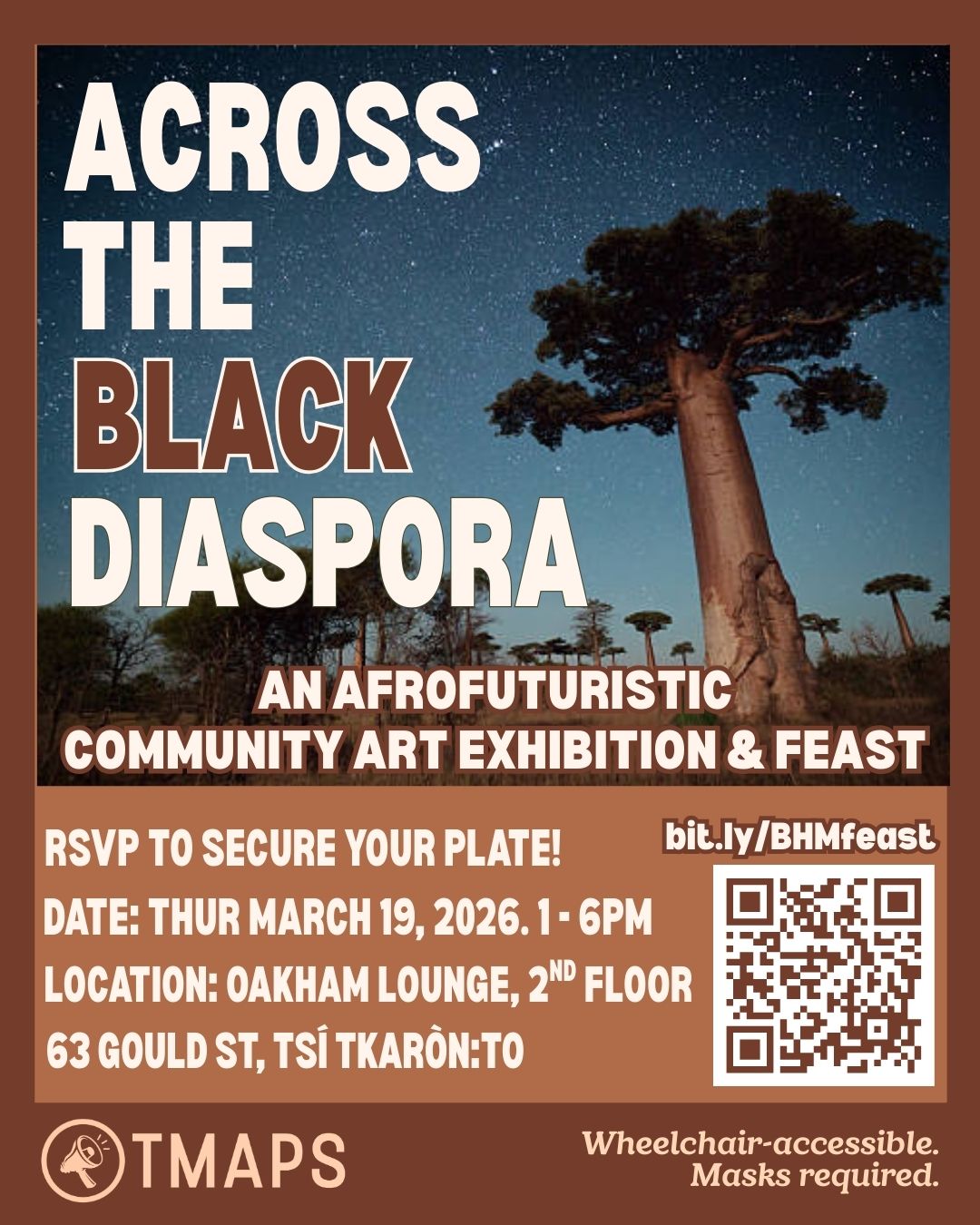 Join TMAPS Events Team and help us poster for our upcoming event, Across the Black Diaspora: A Community Art Exhibition & Feast on Thurs March 19th, 1-6PM. We need all the help we can get putting up posters for this event!!! Meet us at TMAPS Office, Room 301 - 3rd Floor of 55 Gould St!