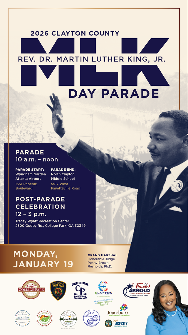 Councilwoman Tracie Arnold and the College Park Police Department are seeking volunteers to assist with the Post-Parade celebration on Monday, January 19, 2020 from 11:00 am - 4:00 pm at the Tracie Wyatt recreation center, 2300 Godby Rd, College Park, GA 30349.