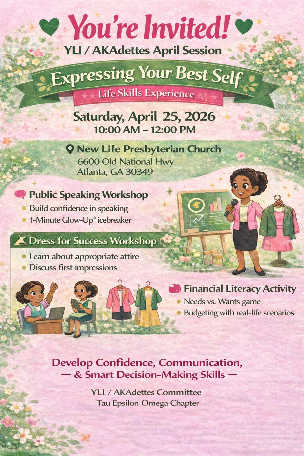 Join us for our April YLI / AKAdettes session as we continue Module 2: Expressing Your Best Self in Everyday Life (Life Skills Experience).