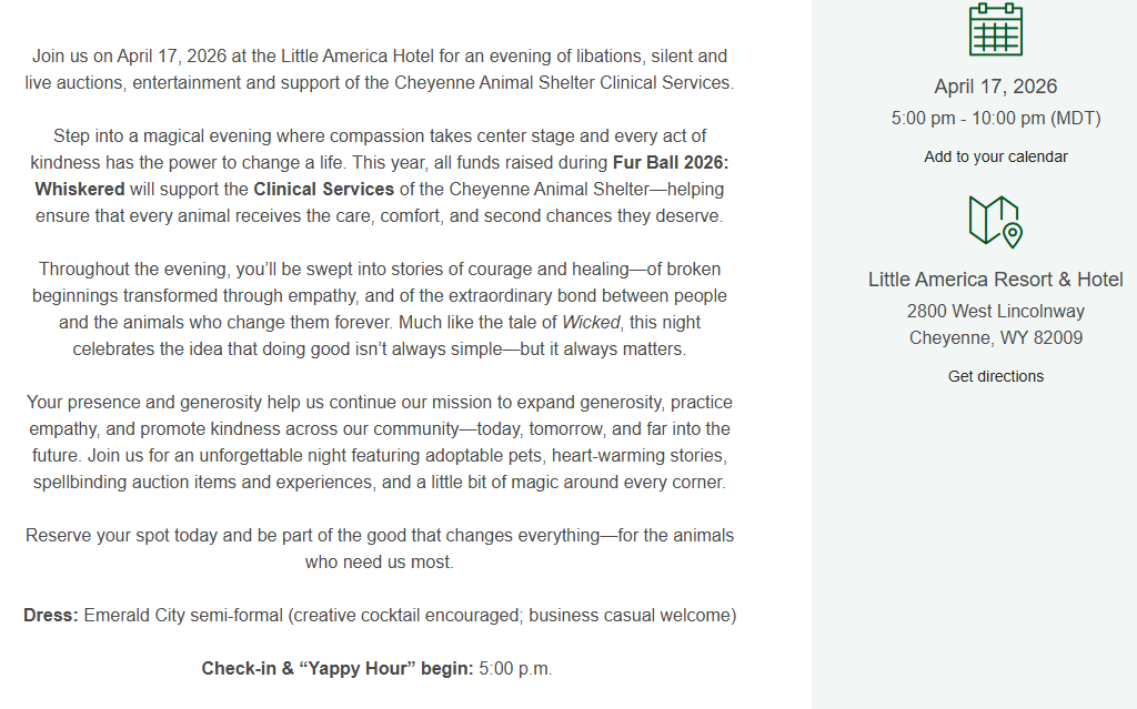 Cheyenne Animal Shelter Fur Ball